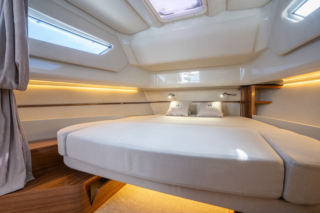Bimini, Bugstrahlruder, Externe lautsprecher, Cockpittisch, Elektrische ankerwinde, Außendusche, Teak im cockpit, Solarpanele, Cockpitkissen, Bilgepumpe, Badeleiter, Badeplattform, Deck-sonnenkissen, Tauchermaske, Bilgepumpe elektrisch, Lautsprecher außerhalb, Dusche an deck.