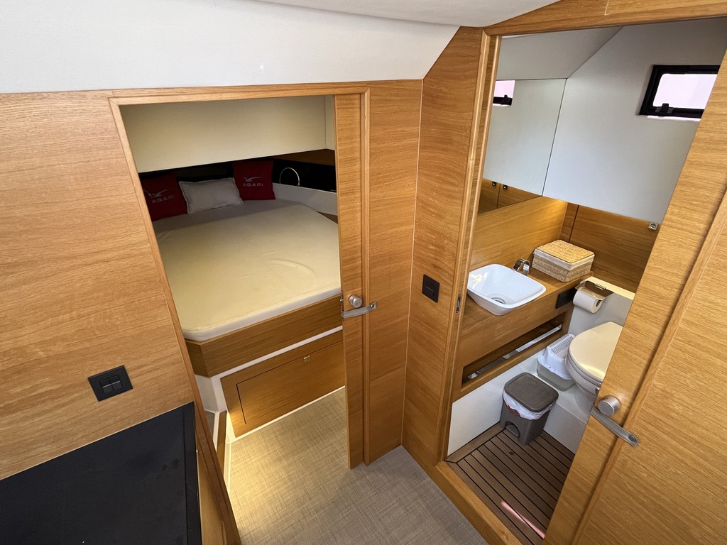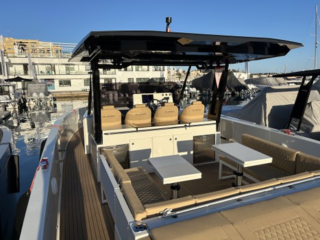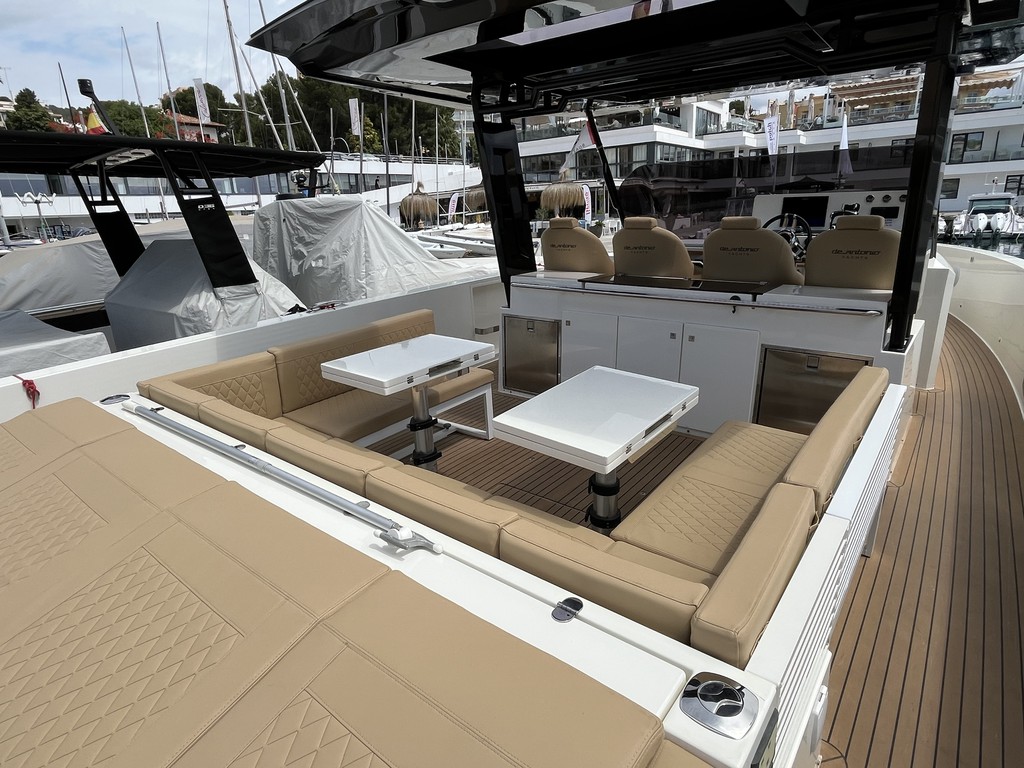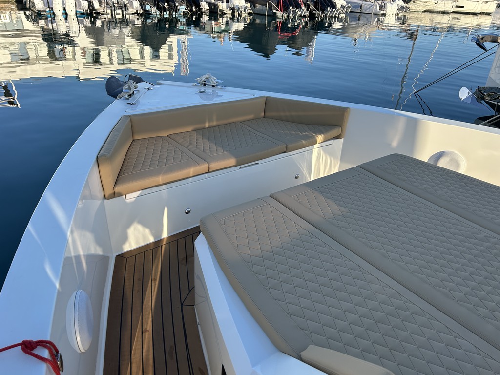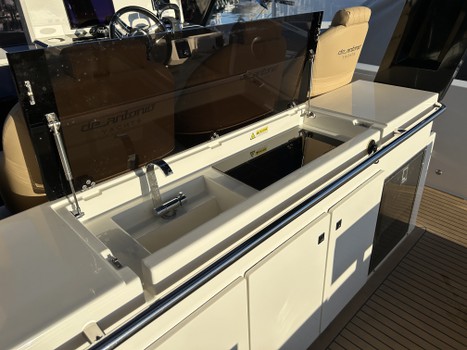 Bimini, Bugstrahlruder, Externe lautsprecher, Cockpittisch, Beiboot, Elektrische ankerwinde, Außendusche, Teak im cockpit, Teakdeck, Cockpitkissen, Kühlbox, Bilgepumpe, Badeleiter, Badeplattform, Deck-sonnenkissen, Bilgepumpe elektrisch, Lautsprecher außerhalb, Dusche an deck.